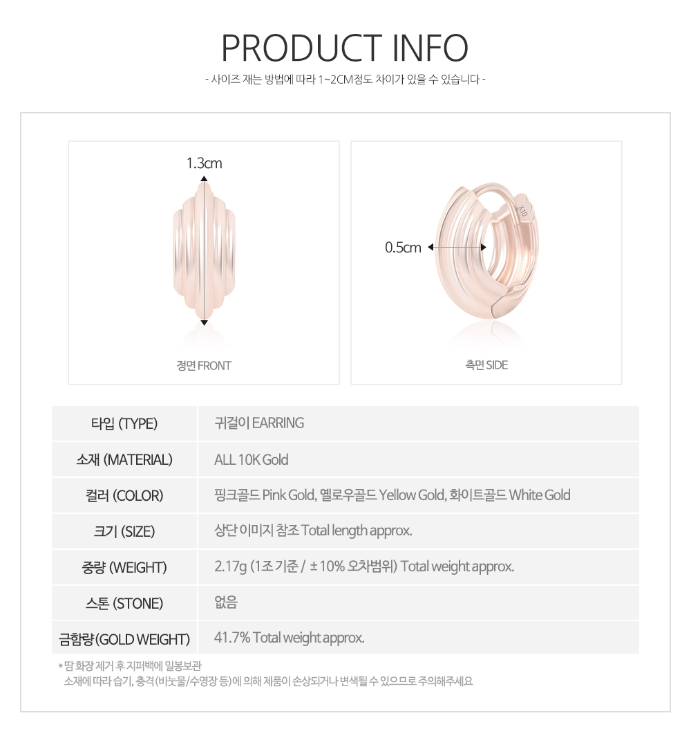Free shipping★<br> <font color="red">Total 10K Gold★</font><br> Pharrell Volume One Touch Ring Earring<br> EA0020_R