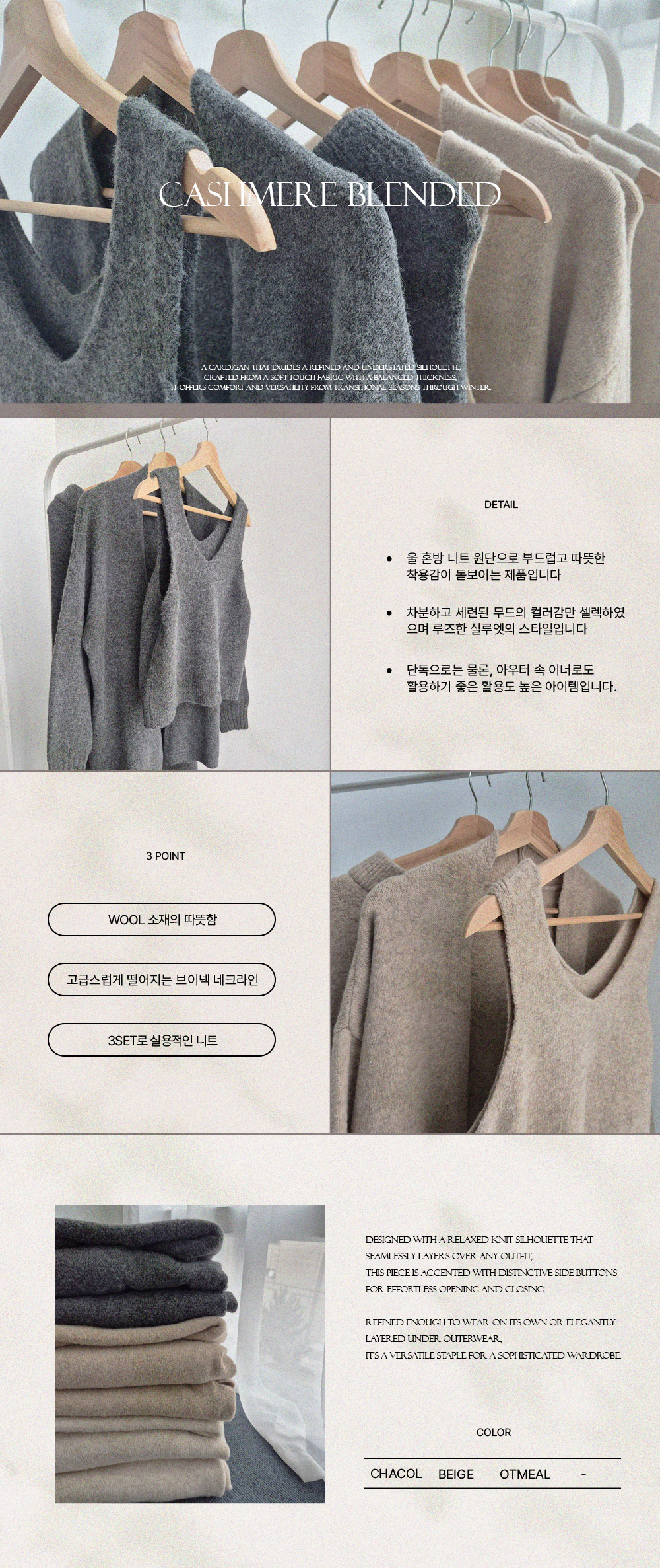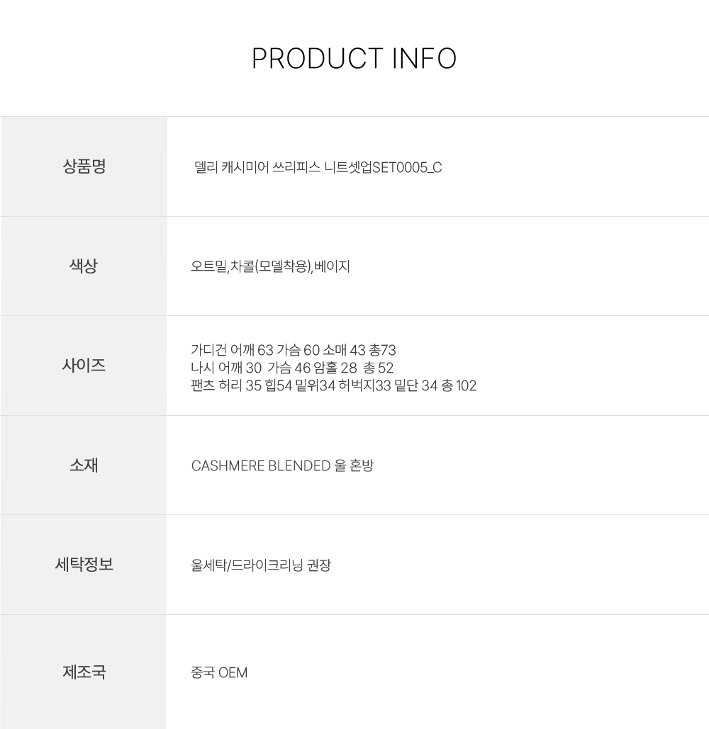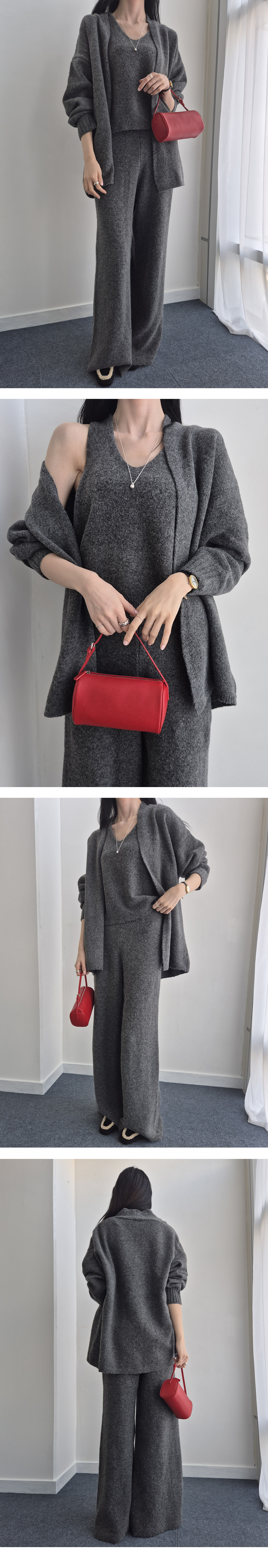 <font color='red'>Contemporary Launch 70% + 10,000 Won Additional Discount</font><br> 1+1+1 Knit Cardigan Pants Set 3 Colors ~77<br> Deli Cashmere Three-piece Knit Set SET0005_C
