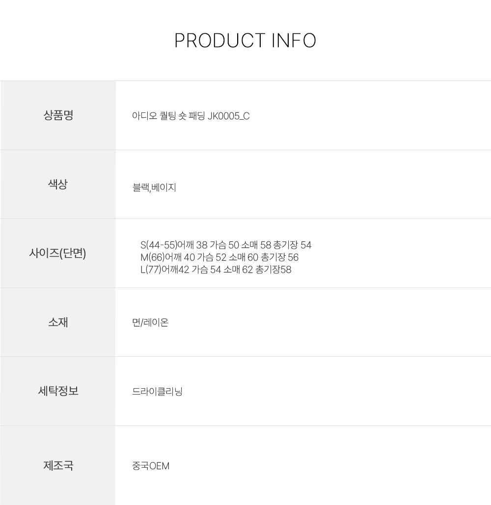 <font color='red'>Contemporary 48-Hour Special Offer★</font><br> Brand process S~L size<br> Adio Quilting Lightweight Padding JK0005_C
